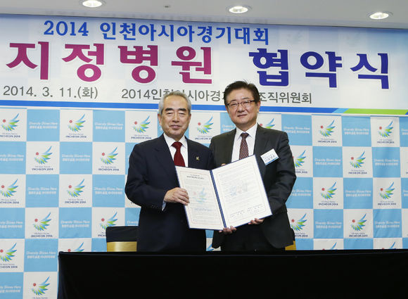2014 인천아시아경기대회 조직위원회(위원장 김영수)는 올해 9월 19일부터 10월 4일까지 열리는 인천아시안게임 기간 동안 의료지원을 책임질 대회 공식병원을 선정했다.