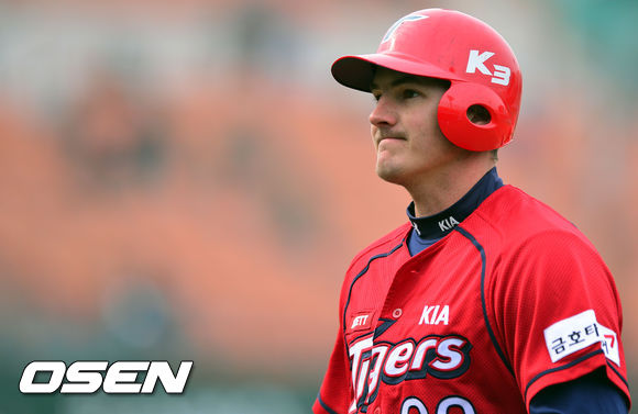11일 서울 목동구장에서 열린 '2014 프로야구 시범경기' 넥센 히어로즈와 KIA 타이거즈의 경기 7회말 KIA 필이 외야플라이 아웃되자 아쉬워하고 있다.