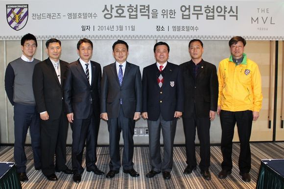 전남 드래곤즈가 엠블호텔 여수(총지배인 윤혁락)와 업무협약을 맺고 상호 발전을 위해 협력하기로 했다.