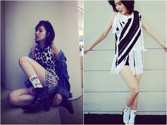 공개된 사진 속 현아는 호피 무늬 의상을 입고 멍하니 앉아 있는 모습이 담겨 있다. 다른 사진에는 핫팬츠를 입고 해맑은 미소를 짓고 있다. 달라 붙는 의상에도 굴욕 없는 몸매를 뽐내고 있어 눈길을 사로잡는다.
