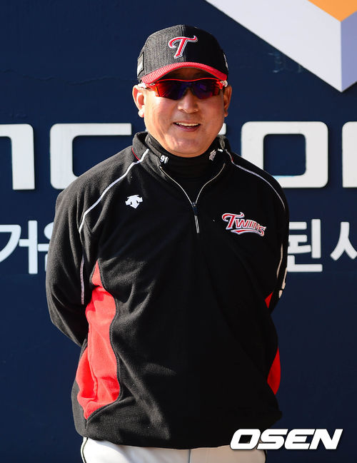 8회초 LG 문선재의 적시타 때 김기태 감독이 미소를 짓고 있다./sunday@osen.co.kr