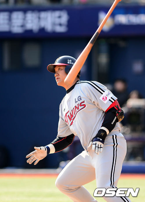8회초 2사 1루에서 LG 최승준이 좌전 2루타를 치고 있다./sunday@osen.co.kr