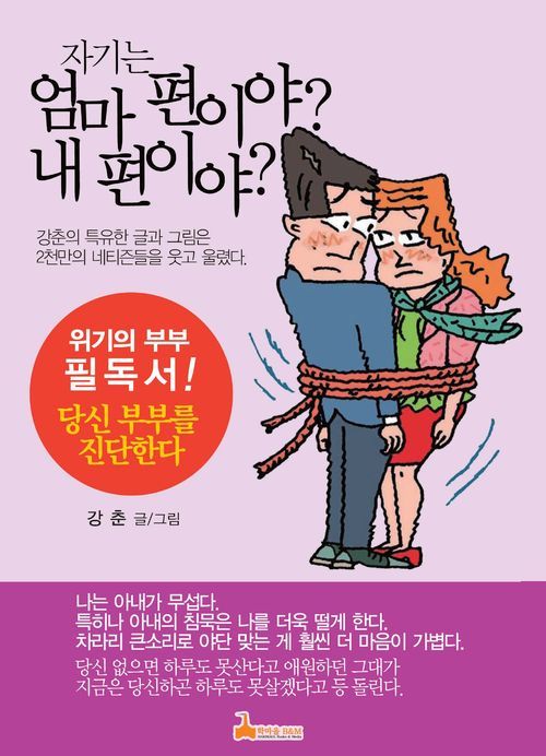 '자기는 엄마 편이야? 내 편이야?'는 포털 'Daum'과 '조인스', '저널로그'에서 1500만 방문객을 매료시킨 인기 웹툰 작가 강춘이 갈수록 혼탁해져 가고 있는 부부문제와 고부간 문제를 심도있게, 하지만 유머러스하게 다룬 것은 물론 해결책까지 제시하고 있다.