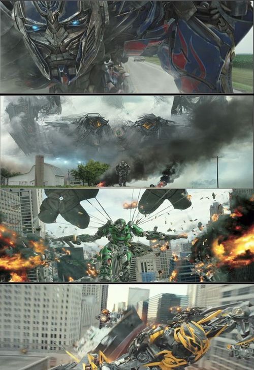 그리고 마침내 정체를 드러낸 옵티머스 프라임을 비롯해 도심 상공에 나타난 거대한 로봇 비행선, 그리고 새롭게 등장한 위협적인 로봇과 낙하산을 펴고 공중을 날아다니며 총격전을 펼치는 로봇의 등장은 눈길을 잡아 끈다.