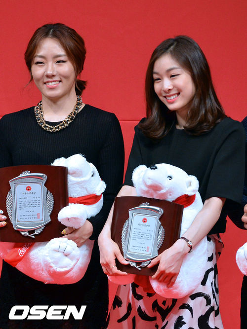 김연아와 이상화가 최우수선수상을, 박승희가 우수선수상, 스피드스케이팅 남자추월팀(이승훈, 주형준, 김철민)과 쇼트트랙 여자대표팀(조해리, 박승희, 박아랑, 공상정, 심석희)이 우수단체상, 최재우와 심석희가 신인상을 수상했다./ soul1014@osen.co.kr
