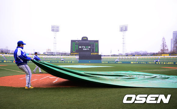 12일 오후 대구구장에서 열릴 예정이던 '2014 프로야구 시범경기' 삼성 라이온즈와 SK 와이번스의 경기가 우천으로 인해 취소됐다.