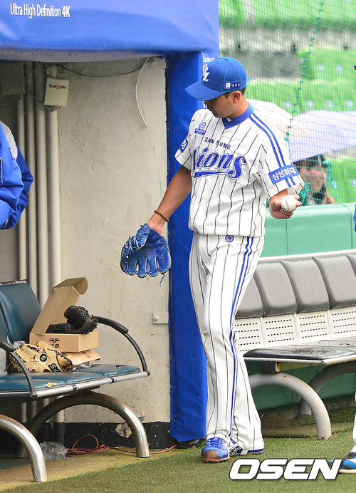 선발 예정이었던 삼성 장원삼이 그라운드를 나서고 있다.