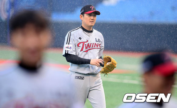 2회 우천으로 경기가 취소되자 LG 선발투수 김선우가 더그아웃으로 가고 있다./sunday@osen.co.kr