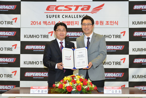 국내 모터스포츠 챔피언십 대회를 주관하는 슈퍼레이스(대표이사 김준호)는 12일 글로벌 타이어 기업 금호타이어와 종로구 금호아시아나 본관에서 ‘엑스타 슈퍼챌린지(ECSTA SUPERCHALLENGE)’ 공식 후원 조인식을 가졌다고 밝혔다.
