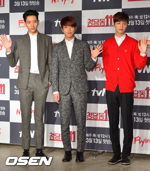 12일 오후 서울 여의도IFC몰에서 진행된 tvN '청담동111: 엔플라잉 스타가 되는 길' 기자간담회에서 그룹 씨엔블루가 포즈를 취하고 있다
