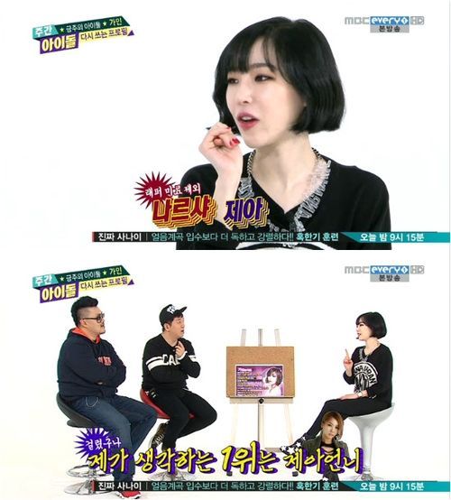그는 “내가 생각하는 1위는 제아 언니다”라고 말해 자동적으로 나르샤를 브라운아이드걸스 가창력 순위 3위라고 지정했다