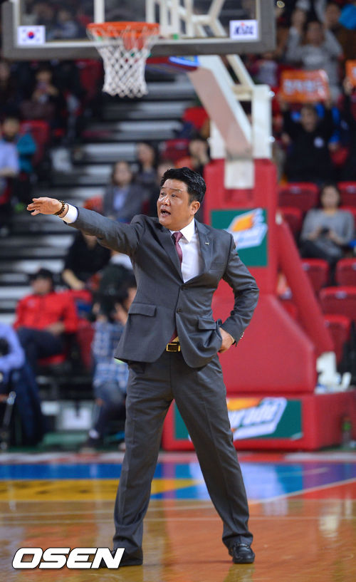 12일 오후 인천 삼산월드체육관에서 열린 '2013-2014 KB국민카드 프로농구' 6강 플레이오프 1차전 경기, 2쿼터 전자랜드 유도훈 감독이 판정에 항의하고 있다