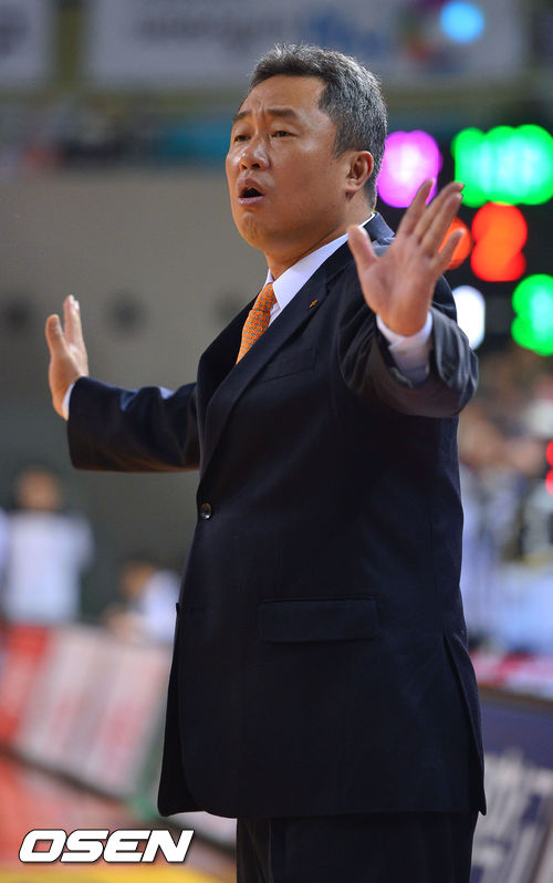 12일 오후 인천 삼산월드체육관에서 열린 '2013-2014 KB국민카드 프로농구' 6강 플레이오프 1차전 경기, 2쿼터 KT 전창진 감독이 선수들에게 작전 지시를 하고 있다.