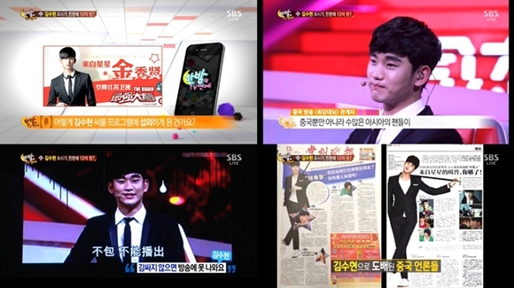 12일 오후 방송된 SBS 연예정보프로그램 '한밤의 TV연예'에서는 중국에서 열풍을 일으킨 김수현에 대해 조명했다.