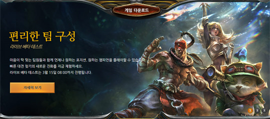 라이엇게임즈가 13일 적용한 '편리한 팀 구성 기능' 라이브 베타 테스트는 플레이어가 원하는 역할군, 챔피언, 포지션을 구체적으로 정한 후 조건에 맞는 팀원들을 찾아 함께 플레이할 수 있도록 하는, 기존에 없었던 신규 모드.