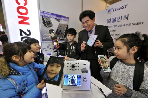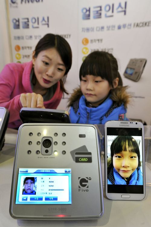 12일부터 14일까지 경기도 고양시 킨텍스에서 열리는 ‘세계 보안 엑스포 2014’에 참가한 파이브지티가 얼굴 인식 보안 시스템 ‘GTFR-5000’을 선보이고 있는 것. 파이브지티는 엑스포를 참관하는 워킹맘과 어린이들에게 얼굴 인식 보안 시스템을 체험하게 하고 스마트폰 연동을 통한 자녀의 안전 귀가 확인 방법 등을 안내하고 있다.