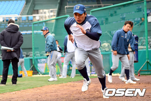 경기에 앞서 NC 이종욱이 주루 훈련을 하고 있다.