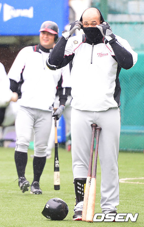 LG 외국인 선수 조쉬 벨이 타격 훈련을 준비하고 있다.