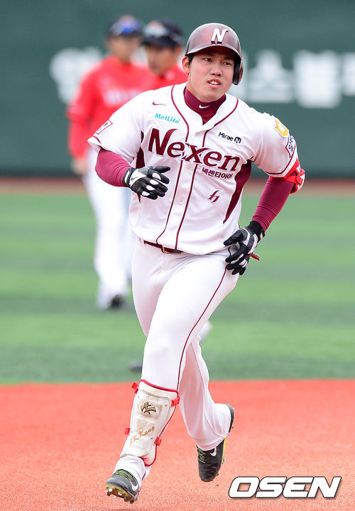 1회초 1사에서 넥센 강지광이 우월 솔로포를 날리고 그라운드를 돌고 있다.