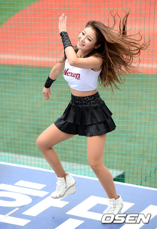 넥센 치어리더가 쌀쌀한 날씨에도 불구하고 열띤 응원을 선보이고 있다.