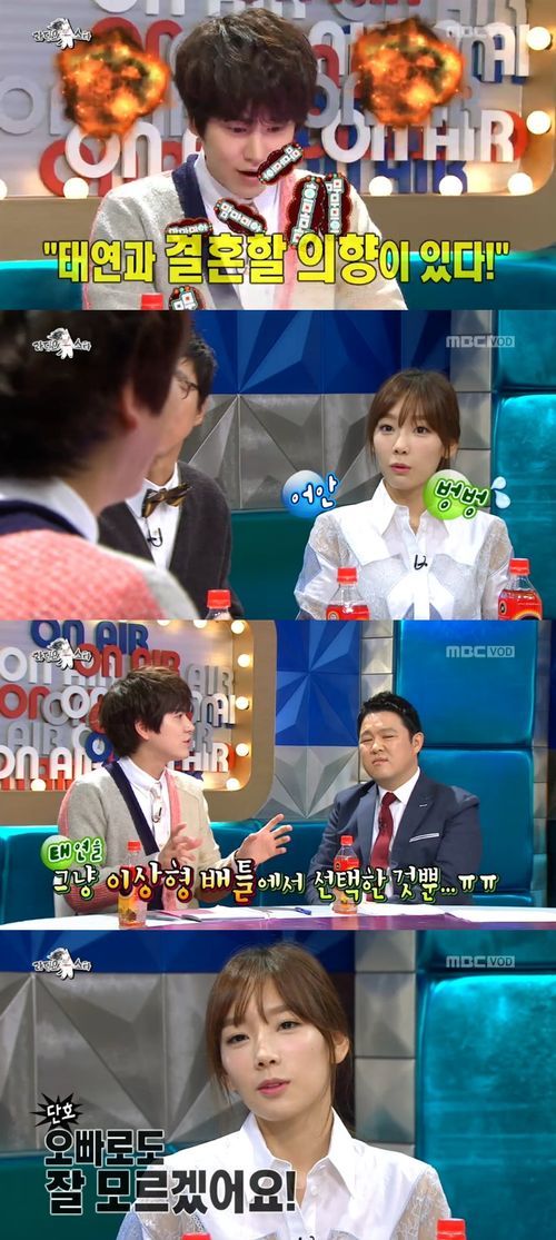 이에 규현은 “절대 그런 거 아니다”며 “그 당시 ‘맘마미아’ 시청률이 그다지 좋지 않았기 때문에 많은 분들이 못 보셔서 그런데 이상형 배틀에서 태연을 선택한 것뿐이었다”고 설명했다.