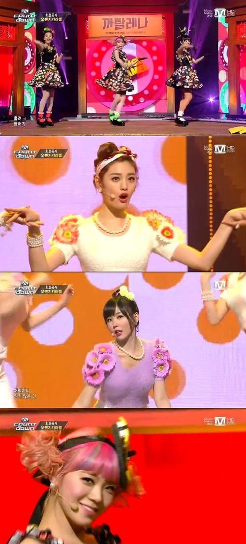 오렌지캬라멜은 13일 오후 6시 생방송된 엠넷 '엠카운트다운'에서 곡 '쏘 쏘리(so sorry)'와 '까탈레나'를 선보이며 강렬한 컴백 무대를 꾸몄다.