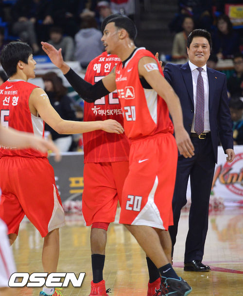 경기종료 후 SK 문경은 감독이 선수들에게 박수를 치고 있다. / soul1014@osen.co.kr