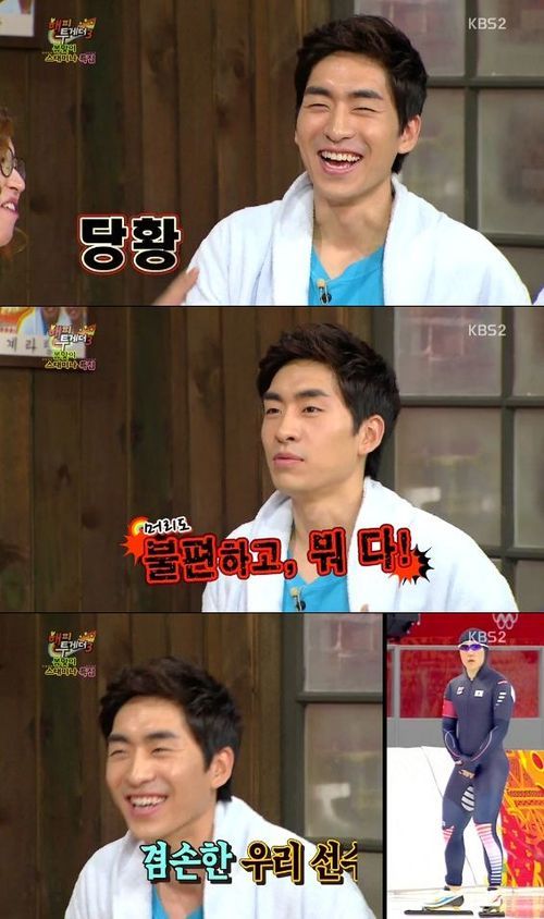 스피드스케이팅 선수 이승훈이 "경기 복장이 서 있으면 굉장히 불편하다"고 말해 폭소케 했다.