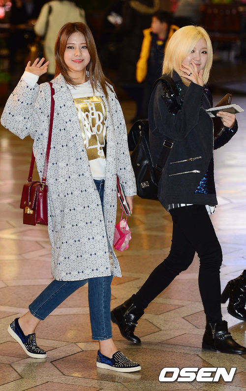 14일 오전 AOA 혜정과 유경이 FNC 패밀리 콘서트 ‘FNC 킹덤 인 재팬’ 무대에 서기 위해 김포공항을 통해 일본 도쿄로 출국하고 있다.