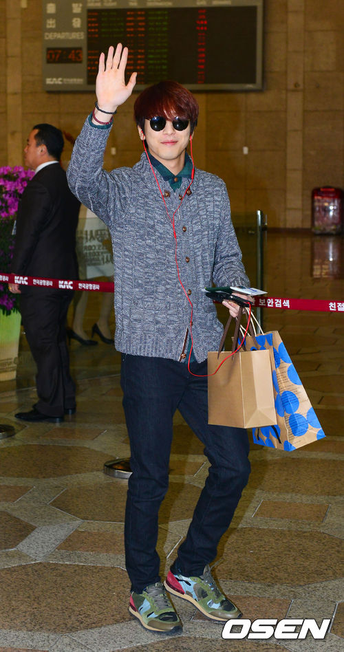 14일 오전 씨엔블루 정용화가 FNC 패밀리 콘서트 ‘FNC 킹덤 인 재팬’ 무대에 서기 위해 김포공항을 통해 일본 도쿄로 출국하고 있다.