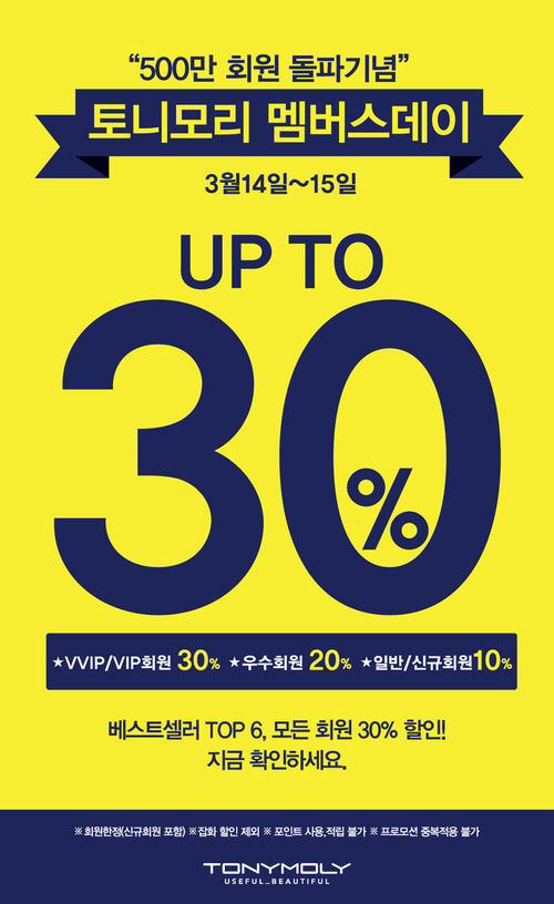 토니모리는 14일, 15일 양일간 멤버스데이를 개최하고 최대 30%까지 할인을 제공한다고 밝혔다.