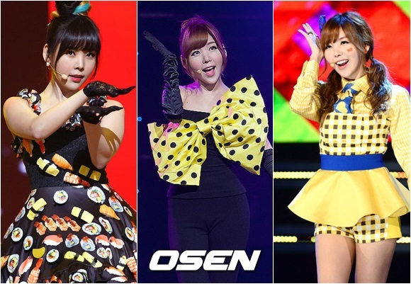 반면 오렌지캬라멜은 존재 자체만으로도 이런 요소에 반기(?)를 들었으며, 매번 기상천외한 콘셉트로 돌아와 기대를 충족케 했죠. 특히 이번 신곡 '까탈레나'에선 초밥이 된 인어로 변신, 인간계를 벗어나며 차후 나아갈 수 있는 콘셉트 방향을 무한히 열어젖혔습니다. 지난 13일 엠넷 '엠카운트다운' 컴백 무대 직후 대기실에서 초밥 머리를 얹고 만난 리지 역시 "생선도 했으니 이젠 야채, 쇠고기가 될지도 모르죠"라며 해맑게 웃더군요.