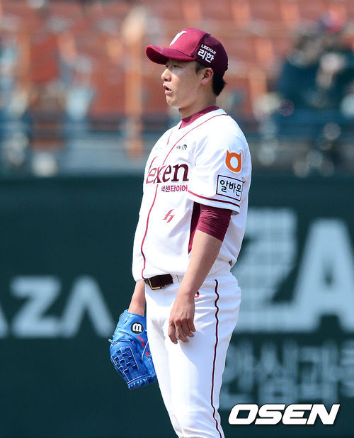 1회초 무사 1,3루에서 넥센 선발 오재영이 SK 나주환에 선제 적시타를 허용하고 아쉬워하고 있다.