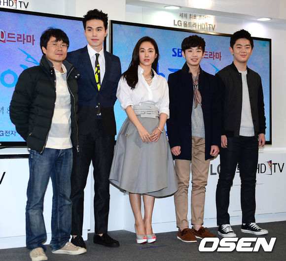 14일 오후 서울 여의도동 LG트윈타워에서 열린 SBS 3D드라마 '강구이야기' 제작발표회에서 (왼쪽부터) 홍성창 PD, 이동욱, 박주미, 신동우, 전하늘이 포토타임을 갖고 있다.
