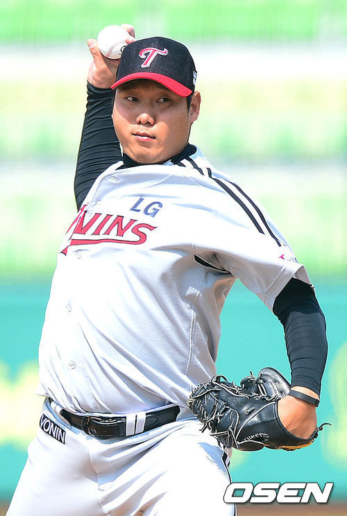LG 선발 류제국이 힘차게 공을 뿌리고 있다.