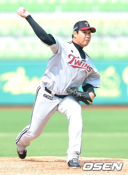 LG 선발 류제국이 힘차게 공을 뿌리고 있다.
