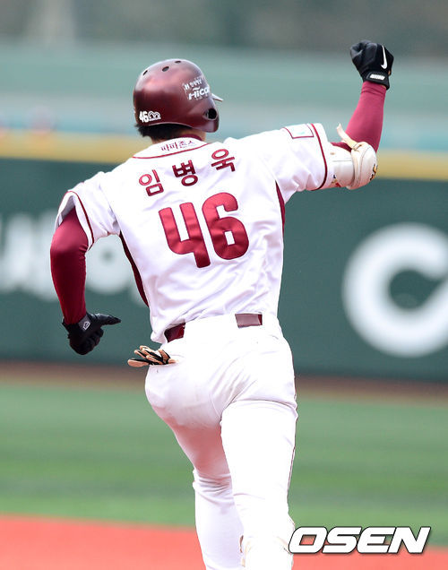 4회말 1사 1,3루에서 넥센 임병욱이 역전 스리런포를 날리고 그라운드를 돌고 있다.