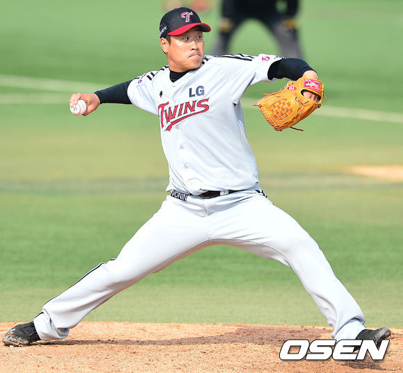 7회말 삼성 공격 마운드에 오른 LG 투수 정현욱이 힘차게 공을 뿌리고 있다.