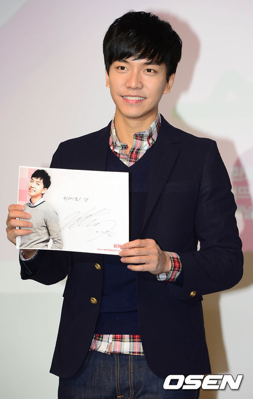 이승기가 14일 오후 서울 삼성동 위메프 사옥에서 열린 팬미팅 행사에서 자신의 사인을 들고 포즈를 취하고 있다.