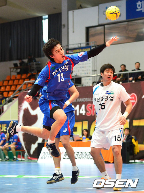 14일 오후 대구 시민체육관에서 '2014 SK 핸드볼 코리아리그' 남자부 두산 대 충남체육회의 경기가 열렸다.