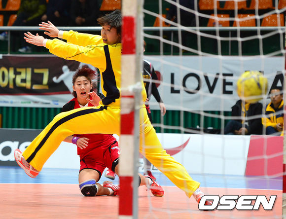 14일 오후 대구 시민체육관에서 '2014 SK 핸드볼 코리아리그' 여자부 삼척시청 대 경남개발공사의 경기가 열렸다.