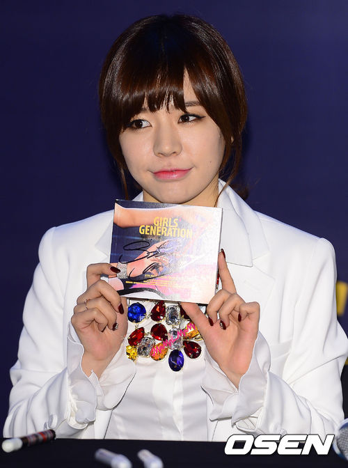 14일 저녁 서울 영등포구 여의도동 IFC몰 여의도 L3 노스아트리움에서 열린 소녀시대 '미스터미스터' 앨범 발매 기념 팬사인회에서 소녀시대 써니가 사인CD를 들고 있다.