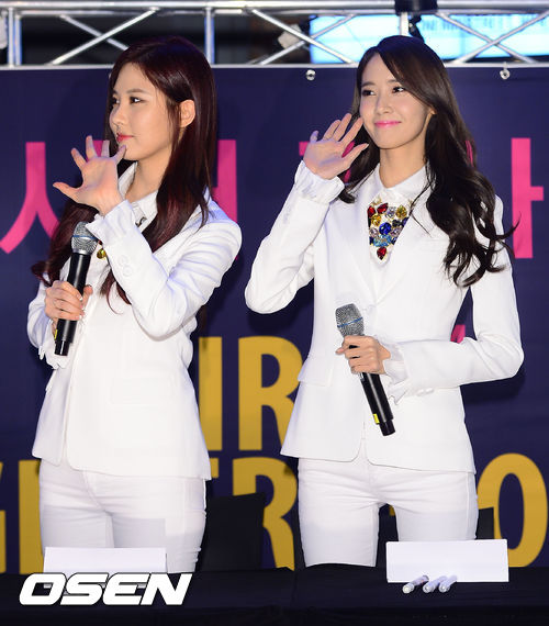14일 저녁 서울 영등포구 여의도동 IFC몰 여의도 L3 노스아트리움에서 열린 소녀시대 '미스터미스터' 앨범 발매 기념 팬사인회에서 소녀시대 서현과 윤아가 팬들에게 인사를 하고 있다.