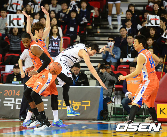 던졌다 하면 들어가는 슈터는 어떻게 상대해야 될까. 공을 아예 못 잡게 하면 된다. 전자랜드가 최고슈터 조성민(31, KT)을 상대로 디나이 수비(deny defense)의 정석을 보였다.