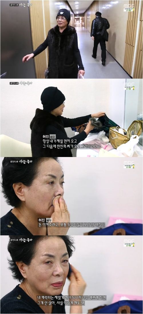 허진은 15일 방송된 MBC 다큐멘터리 ‘휴먼다큐 사람이 좋다’에서 드라마 ‘세번 결혼하는 여자’ 촬영을 앞두고 홀로 분장을 했다.