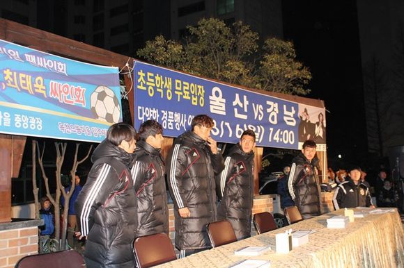 김승규, 김선민, 고창현, 백지훈, 이용 등은 지난 14일 저녁 7시 울산시 남구에 위치한 ‘옥현 으뜸마을 3단지’ 내 으뜸광장을 찾았다.