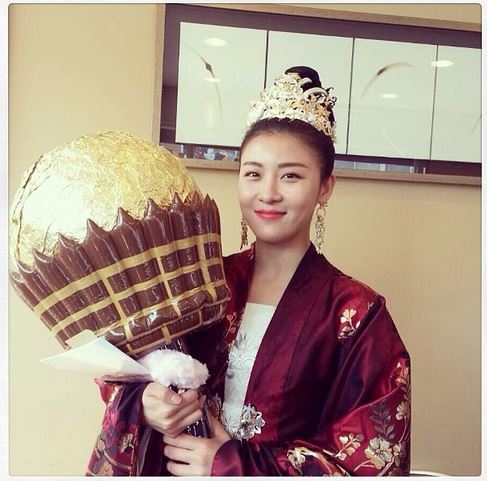 공개된 사진 속 하지원은 거대한 초콜릿을 들고 있다. 하지원은 MBC 월화드라마 ‘기황후’에서의 복장을 한 채 얼굴에는 기쁜 미소를 가득 짓고 있다.
