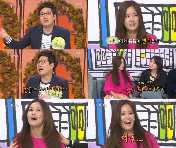 이날 방송에서 조우종 아나운서는 김지민에게 "내가 소치에 있는 동안 자꾸 연락이 오더라. 내 밥을 왜 챙기냐"고 폭로했고 이를 들은 김지민은 당황한 기색을 감추지 못 했다.