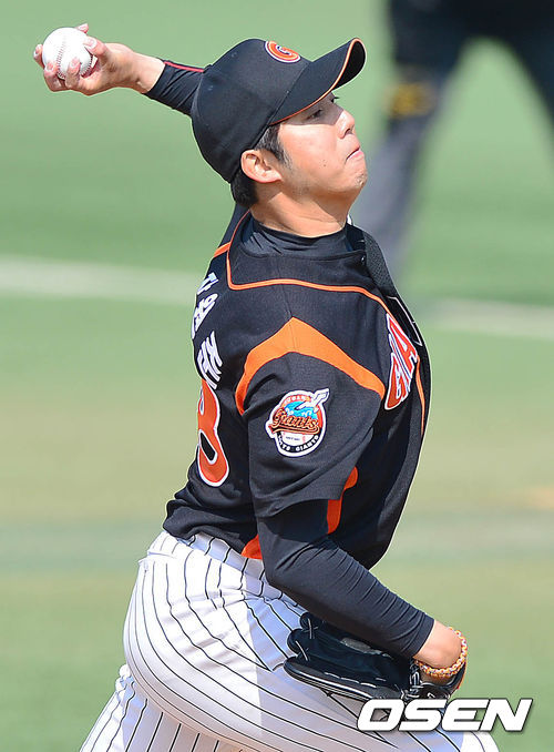 4회말 삼성 공격 롯데 선발 장원준이 힘차게 공을 뿌리고 있다.