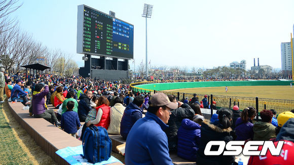 야구팬들이 경기장을 찾아 경기를 관전하고 있다.